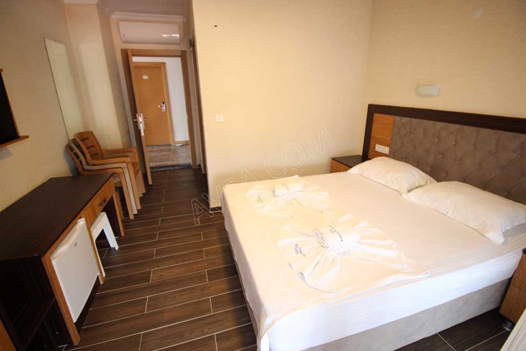 Otelimizin her odası modern ve şık bir şekilde dekore edilmiştir. Odalarımızda TV, mini bar, kablosuz internet, klima, balkon, WC ve saç kurutma makinesi gibi olanaklar mevcuttur. 1+1 odalarımız, dört kişinin rahatlıkla konaklayabileceği şekilde tasarlanmıştır, bu da otelimizi aileler ve arkadaş grupları için ideal bir seçenek haline getirir.